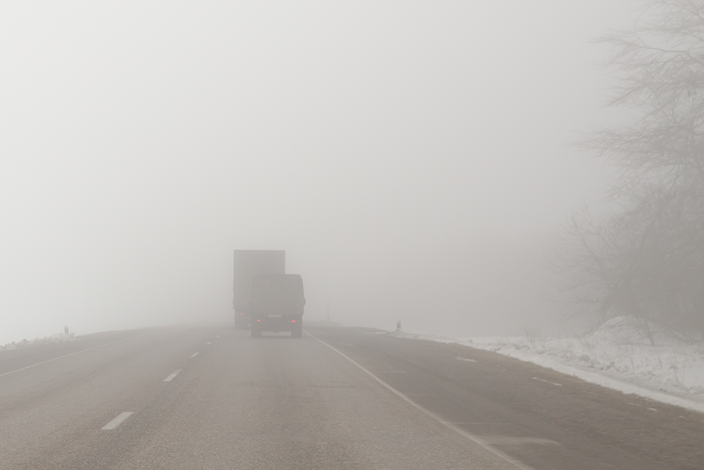 - Drive with your headlights on low beam. High beams will only be reflected back off the fog, further impairing your visibility.